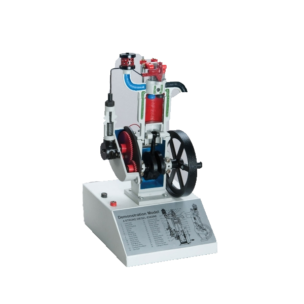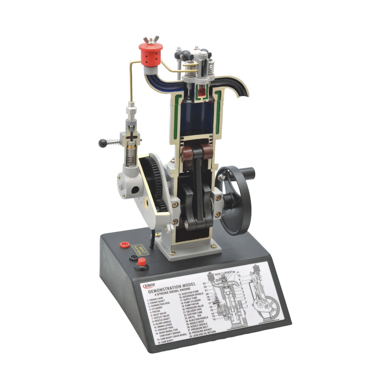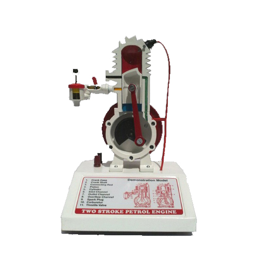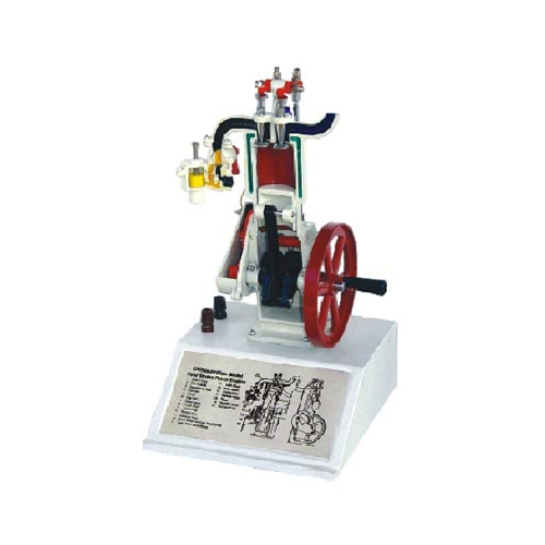 4 stroke One cylinder, 4 cycled and double valve system gas engine, to show operations like intake, compression, explosion, exhaust, spark and others,