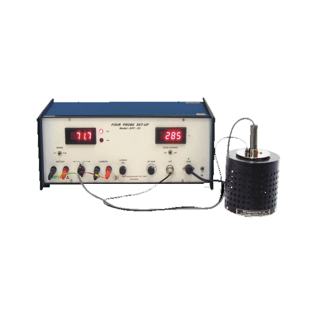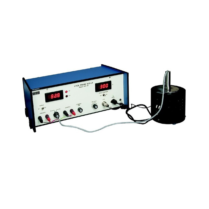 Four Probe Setup Research Model Experiments for Physics Lab - The Four Probe Method is one of the standard and most widely used method for the measurement of resistivity. In its useful form, the four probes are collinear. The error due to contact resistance, which is significant in the electrical measurement on semiconductors, is avoided by the use of two extra contacts (probes) between the curren.