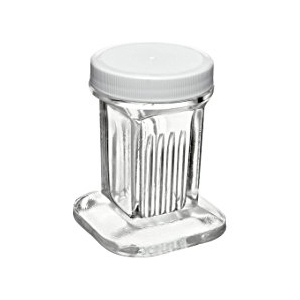 Glass jar, with moulded glass cover, takes 10 slides 76 x 25 mm.