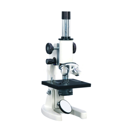 Mainly used for routine microscopy in labs of schools where high magnification is not required. It has a U-shape base, monocular stable inclinable body having coarse motion with rack and pinion, light control by disc or iris - diaphragm, complete in plywood cabinet. Stand Stable & Robust, traditional Horse Shoe base. Body Inclined through 90 deg, standard tube length of 160 mm Focusing Sep