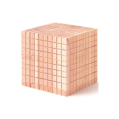 Wooden cube of size 10cm, made of hard wood, precisely cut and finished, having a total volume of 1dm or 1000cm.