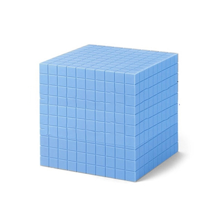 Made of plastic each cube of size 10cm, separated into 10 different 1cm colored layers, comes in a clear plastic container.