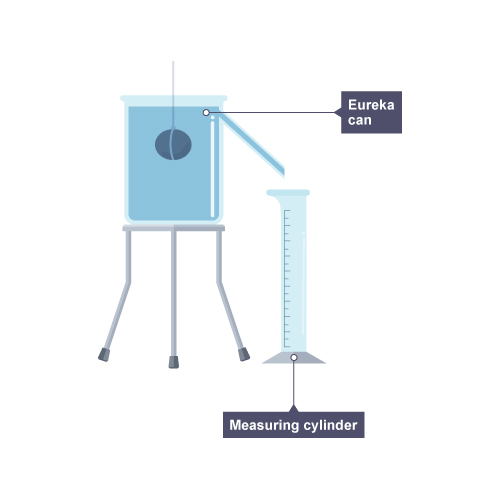 Used in demonstration of Archimedes principle or individual use. Comprising a chrome-plated cylinder with a suspension hook at its one end in close fitting.