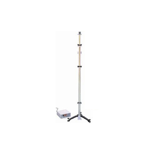 This apparatus is used to determine G by measuring the time of fall of a steel ball through a pre- determined distance.