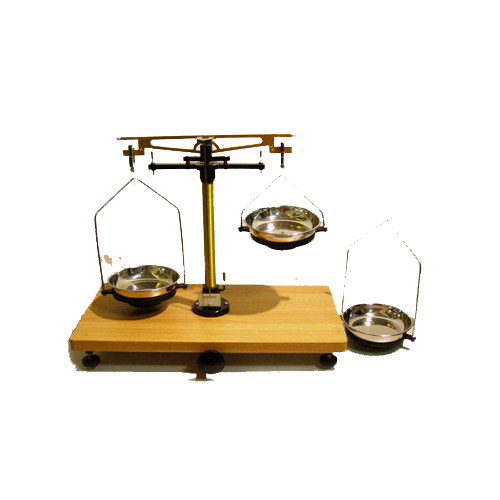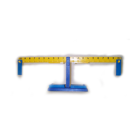 Consists of a graduated meter rule with fulcurm, figured 50-0-50cm balanced and fitted into a grooved wooden stand with hangers supplied without weights.