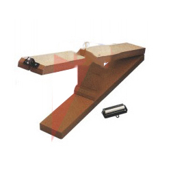 Comprises a lightweight aluminum track with leveling screws and cushioned stops at either end, pulley fixed towards one end, clamp for vibrator and automatic pen release.