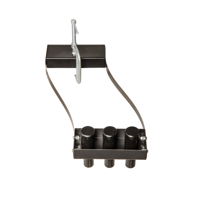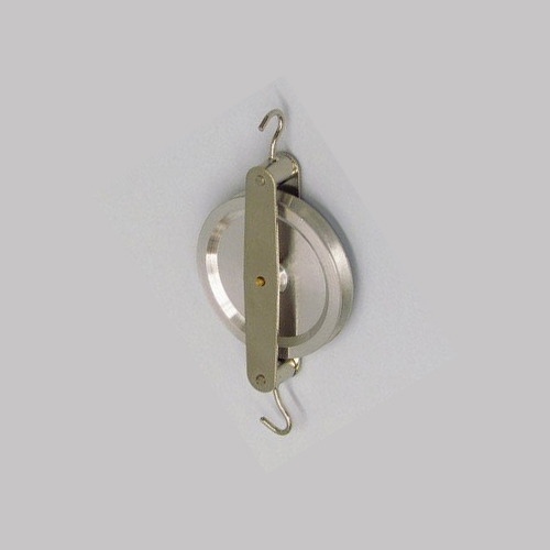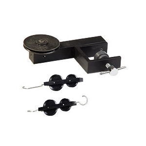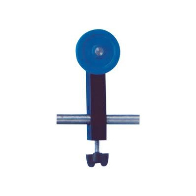 It consists of a 50 mm diameter plastic or aluminum pulley mounted on aluminum frame provided with clamping screw to clamp on the edge of a force board, bench, etc., with axis of rotation being perpendicular to the surface of the board. Max clamp opening 25 mm.