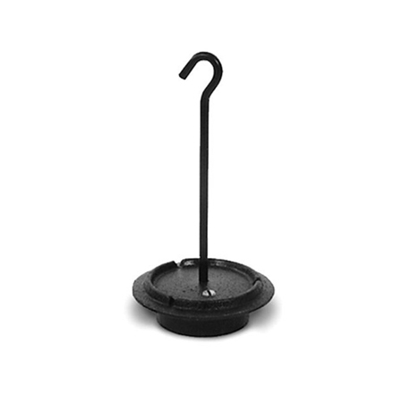 Made of iron, having large hole in center with slot, designed to be used with hangers.