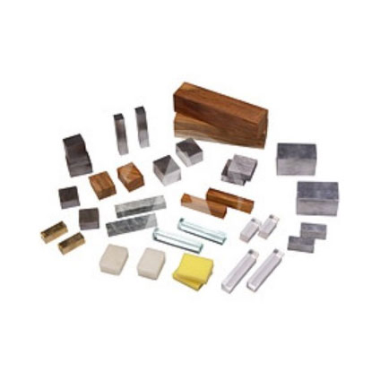 Set of six of different metals brass, lead, iron, copper, aluminum and zinc.