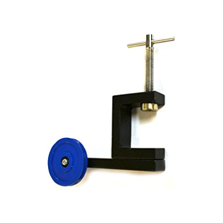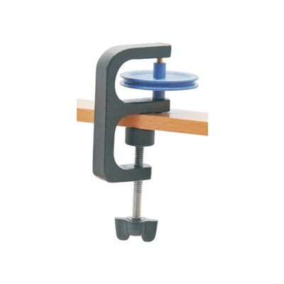It comprises of a 50 mm diameter plastic or aluminum Pulley carried on a metal frame for clamping to the edge of a bench, table etc. with the pulley over-hanging the edge and in vertical plane. Maximum clamp opening 25 mm.