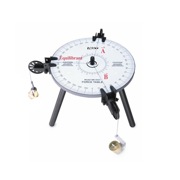To verify the relationship between forces action at a point. Comprises board 65 x 50cm, with two aluminum pulleys, 50mm dia, on clamp, for mounting in any position.