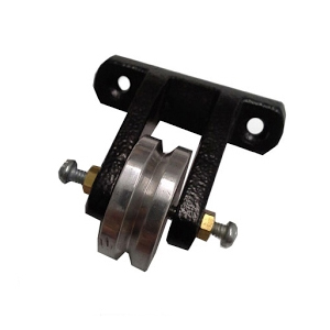Single 50mm diameter ball bearing pulley, mounted in aluminum boss provided with a hole and clamping screw to accommodate rod.