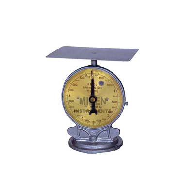 In plastic case with circular scale protected by a transparent cover, removable plastic pan, with zero adjustment.