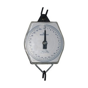 Metal body, it is provided with suspension ring at top and load hook at bottom. Dial dia 15 cm approx.
