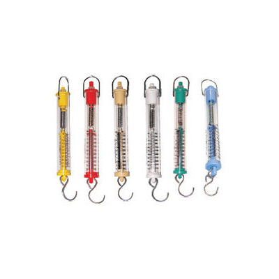 Tubular, body made of clear plastic with adjustable zero and top suspension ring and bottom load hook, color coded.