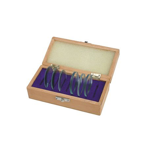 Consists of a plano convex lens, 63 mm dia & 2000 mm focal length, on a flat glass plate of equal diameter. Both enclosed in a metal ring frame with compression adjusting screws equispaced to ensure correct contact between the two elements.