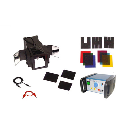 For reflection, refraction, and color mixing experiments. The light box consists of a light source 12 V, 24 W lamp, producing convergent, divergent or parallel beam.