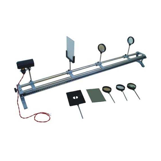 1.5 meter long, for advanced research work; consists of two rods, one stainless steel & one chrome plated steel. The stainless rod is divided in mm. These are supported on heavy cast iron feet with levelling screws. Four specially designed metal sliders having a fine index mark enables reading to be taken on scale with ease & accuracy. The sliders are machined metal so they slide accurately & smoothly on the bed. Two of the sliders have transverse slow motion adjustment. Complete with 6 accessories ( 2 lens holders, 2 optical pins, 1 candle holder, & 1 screen ground glass).