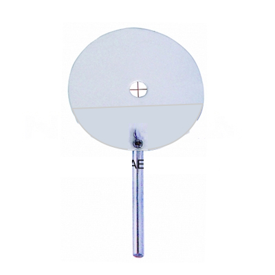 A circular blacked metal screen 75 mm dia with a 10 mm diameter aperture & cross wire of 26 swg wire. Mounted on a 6 mm brass rod giving a centre height of 80 mm approx.