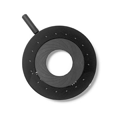 A metal screen 75 mm diameter, with an adjustable iris diaphragm mounted in the centre, giving a maximum aperture of 6 mm. The disc is mounted on a 6 mm brass rod & the optical centre height is 80 mm approx.