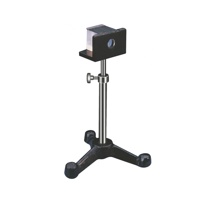Consisting of metal pillar with clamping screw, supported on a black base 100 x 50 mm with an engraved index line at one end to accept rods of 6 mm diameter as used on standard optical bench fittings.