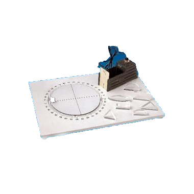 A compact visual teaching aid which is robust in construction wood board 400 x 280 x 13 mm with matt white surface, mounted on rubber feet carries a circular scale with four quadrants 0 - 90� graduated every 2�, with two lines at right angles.