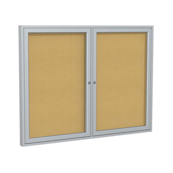 Indoor Enclosed Aluminum Bulletin Boards 2 Doors - 2 Door Enclosed Aluminum Bulletin Boards consist of a lockable cabinet that protects the messages and announcements you tack on the natural cork posting surface. Choose from a number of different sizes for your church, school, restaurant, or office and reach a larger audience on a broader level.