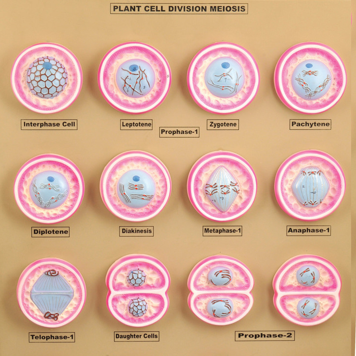 Animal Cell Division Meiosis Zoology Model - Set of 12 models, showing detailed stages in Meiosis cell division, beautifully coloured to bring out the detailed structure as seen under the microscope, mounted on base with key card.