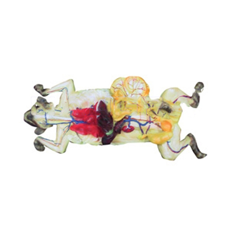 Enlarged, dissection showing the internal organs of both male and female, mounted on base with key card.