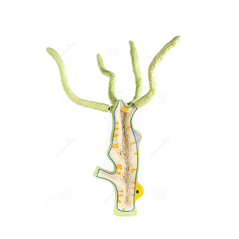 Model of Hydra - 3 Dimensional model dissection showing mouth coelentron, testis, gland cells, ovum, ovary etc., mounted on base with key card.