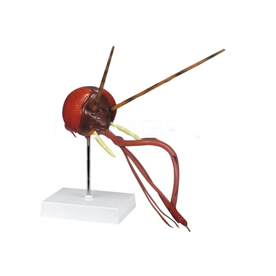 Model of Mosquito Head Showing different parts of mosquito head. Mounted on stand. Numbered with English Key Card.